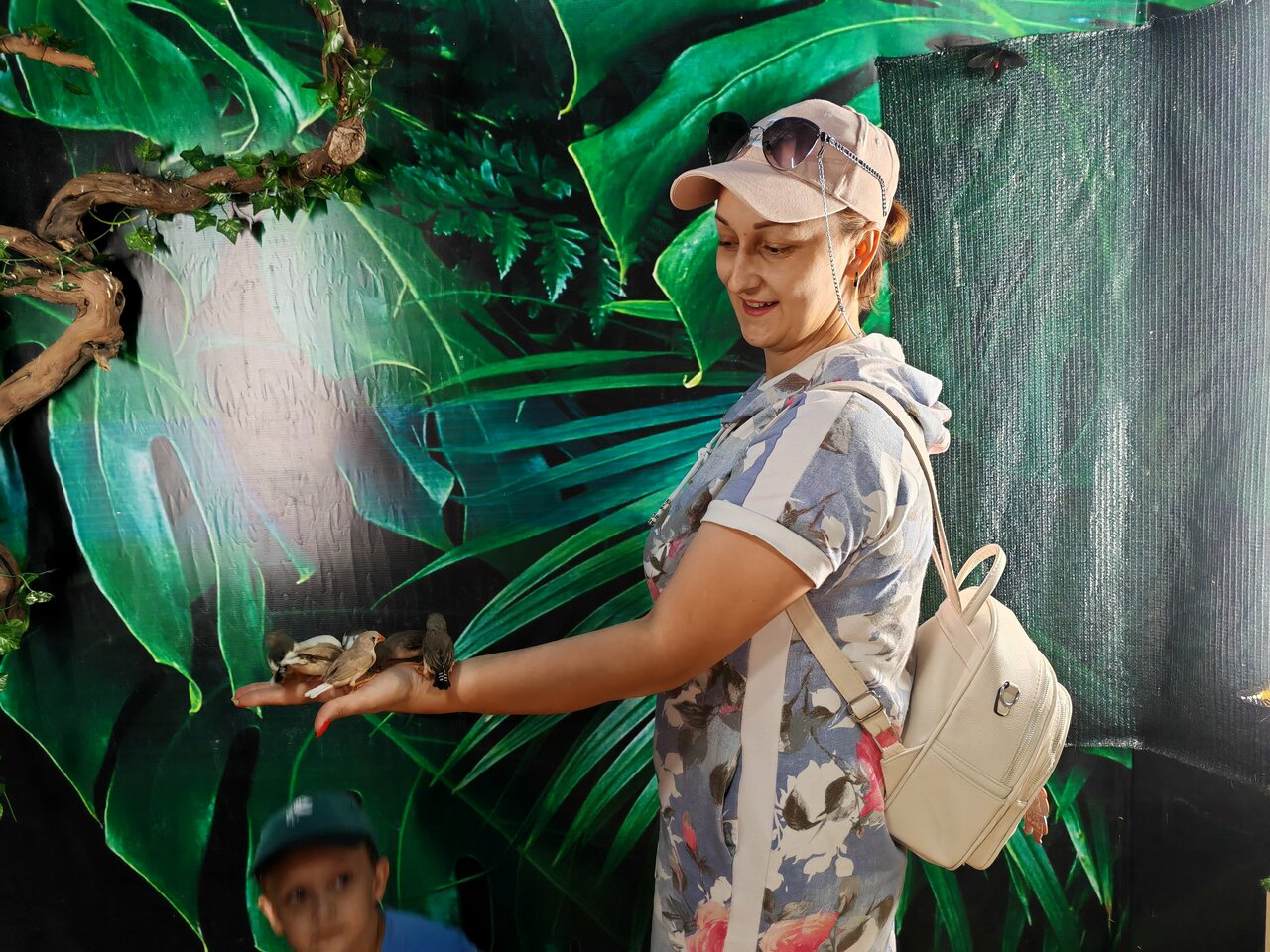 Всё очень понравилось, много интересного, разных животных и насекомых. Несколько видов крокодилов, обязьян, попугаев, бабочек!